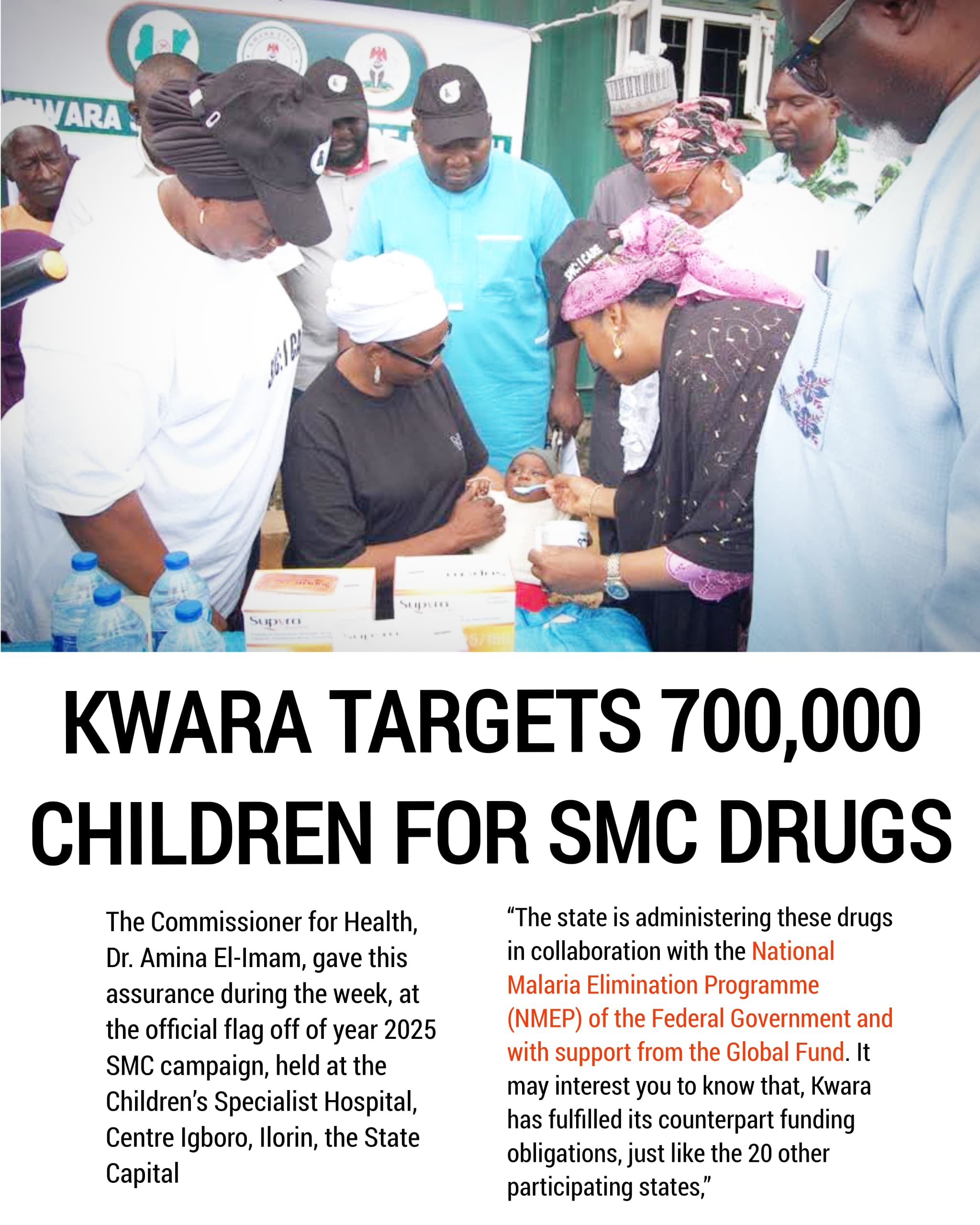 The Kwara State Government has commenced the 2025 Seasonal Malaria Chemoprevention (SMC) campaign aimed at administering preventive drugs to no fewer than 700,000 children across the state.